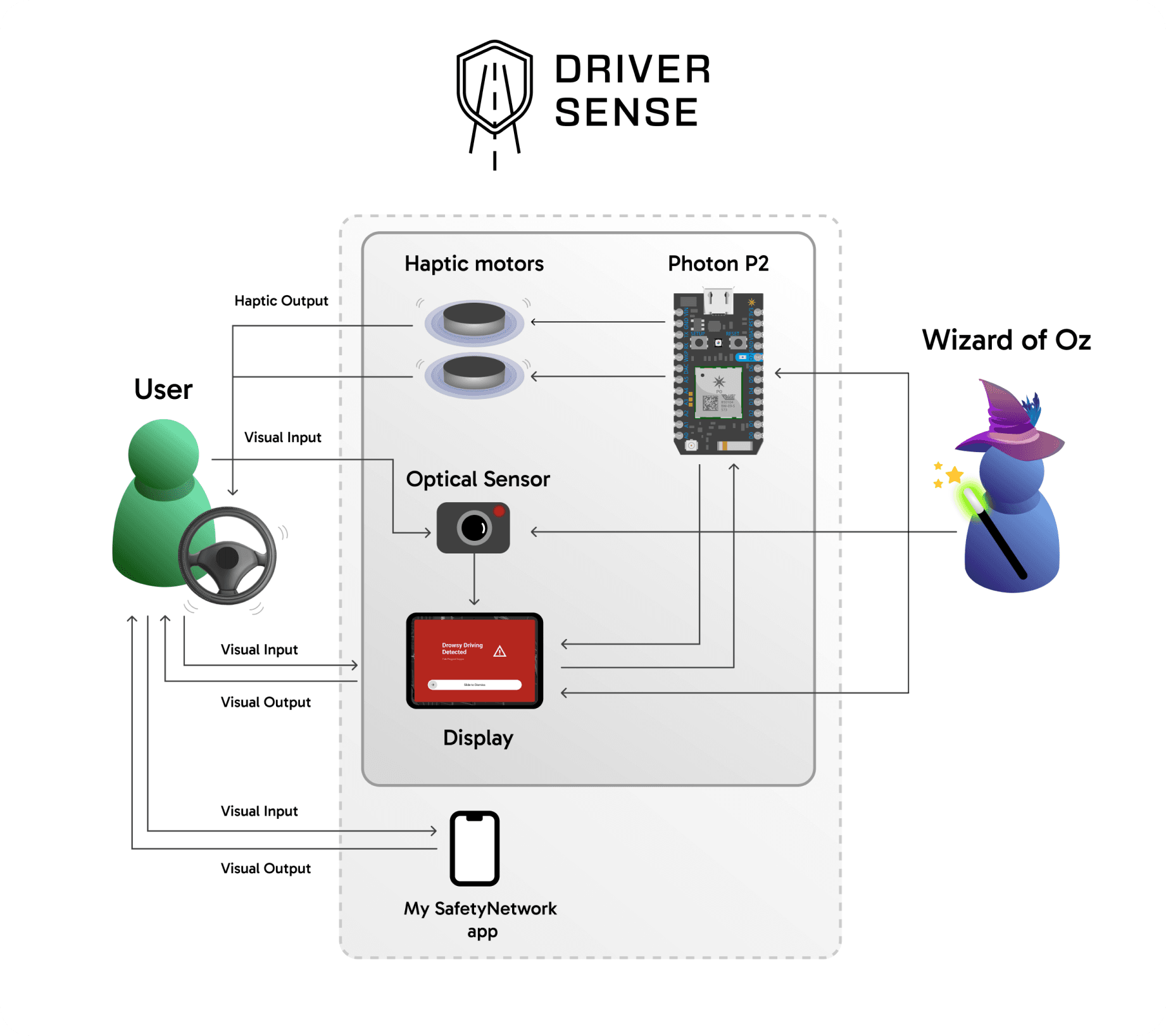With optical sensing as the primary sensor, we also identified other IOT components as necessary outputs: vibration, sound, voice, and Bluetooth.