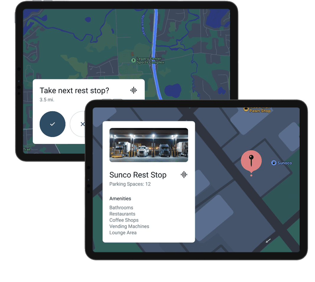 If the driver remains drowsy, the system shifts from alerting to assisting. Instead of repeating alarms, it suggests taking the next available rest stop and shows exactly where it is. Navigation is automatically adjusted, and clear details like food options, bathrooms, and parking availability are surfaced to remove friction. At this stage, the system nudges the driver toward self-care without forcing a decision.
